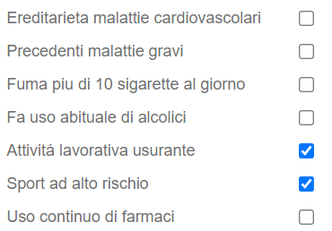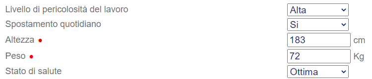 Le informazioni qui richieste contribuiscono a un’analisi dettagliata dell’effettive condizioni di salute, in particolare lo stato di salute è determinante sulla valutazione dell’esposizione al rischio.