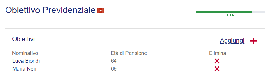 Area dedicata all’aggiunta di obiettivi previdenziali per i soggetti portatori di reddito.