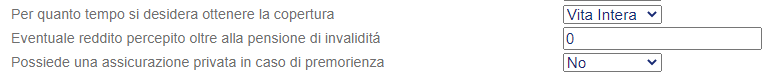 E’ possibile impostare il periodo per il quale si desidera impostare la copertura: vita intera, 10, 20, 30 o 40 anni. Inoltre, qualora si percepiscano ulteriori redditi rispetto a quelli già considerati nella fase di censimento della sezione apposita, qua sarà possibile inserire il valore annuo in modo tale che nel momento della stima delle ipotesi di invalidità e premorienza ICAP ne tenga conto.