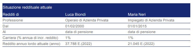 In funzione della categoria lavorativa selezionata, il sistema rileverà automaticamente l’ente previdenziale di appartenenza e stimerà sulla base della normativa vigente l’età e il quantum di pensione. Luca essendo un operaio di un’azienda privata sarà iscritto al Fondo Pensione Lavoratori Dipendenti, così come Maria.