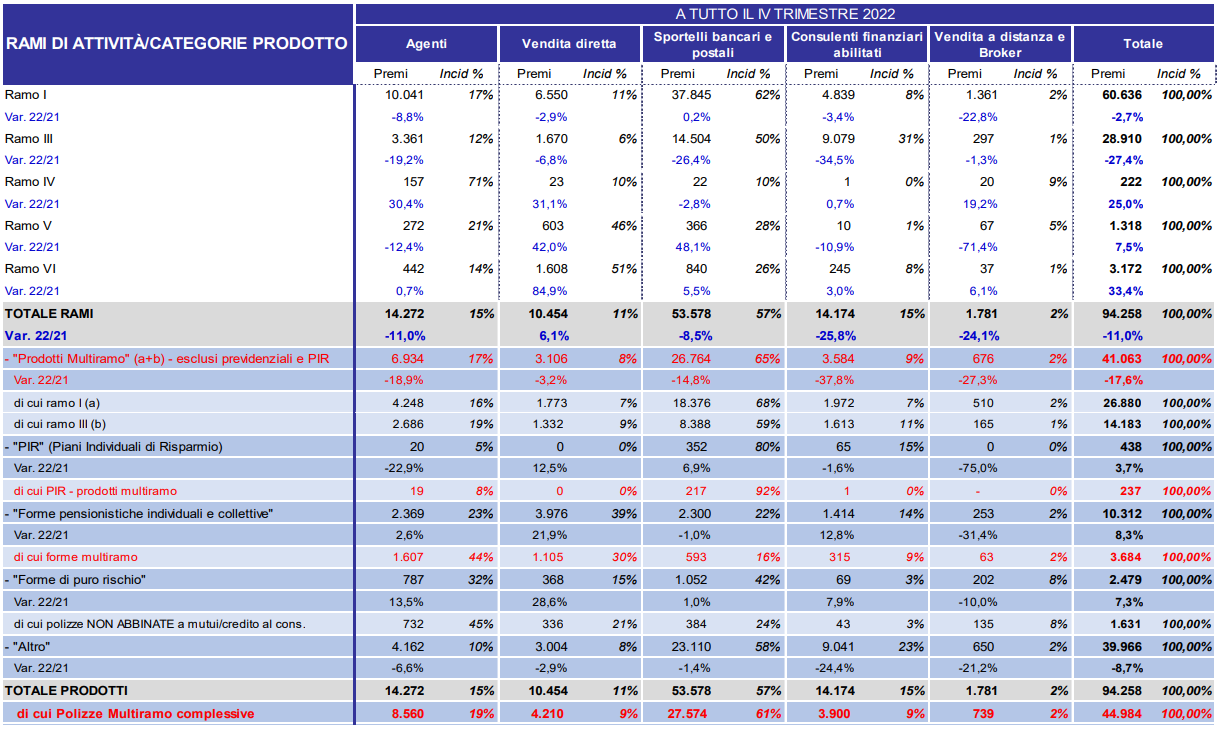 La vendita diretta a distanza e Broker nell’intero anno 2022 hanno contabilizzato un volume premi complessivo di € 1,8 mld, di cui oltre i tre quarti relativi a polizze di