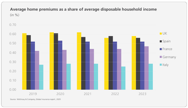 I premi abitazione per rischi catastrofali, in media, restano sotto l’1% del reddito disponibile, quindi risultano complessivamente sostenibili per le famiglie.