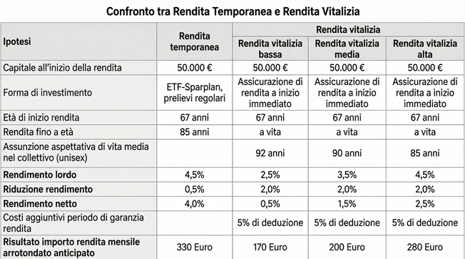 Confronto tra rendita temporanea e rendita vitalizia