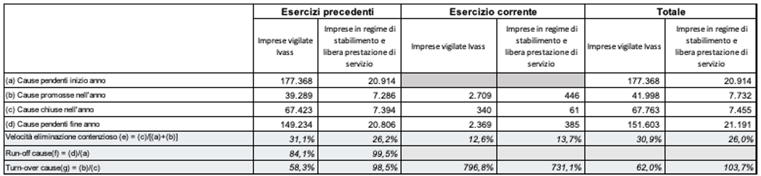 Innanzitutto, prendiamo visione dei numeri sulle cause civili che sono già “parlanti”, utilizzando la tabella della rilevazione IVASS, di seguito riportata.