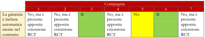 Come si nota dalla tabella di confronto, solamente una compagnia non offre questa tipologia di estensione, escludendo dunque dalla copertura assicurativa i danni alle cose sottoposte a movimentazione, carico e/o scarico.