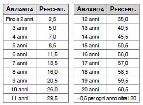 Questa indennità viene calcolata in percentuale sulla media annua delle provvigioni liquidate negli ultimi tre esercizi ed è collegata ad una tabella di coefficienti percentuali crescenti in funzione della durata del mandato