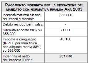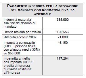 È importante sottolineare che la base imponibile su cui viene conteggiata l’imposta IRPEF, sia per la ritenuta d’acconto a cura dell’impresa, sia per il conguaglio successivo a cura dell’Agenzia delle Entrate, è rappresentata dall’indennità maturata al termine del 9° anno di mandato, da cui non è possibile dedurre, ai fini fiscali, il debito residuo verso la compagnia per il differimento della rivalsa, trattandosi quest’ultimo di una partita in conto capitale registrata sia nello stato patrimoniale dell’impresa che in quello dell’agenzia. Da quanto sopra si evince che se l’indennità maturata è inferiore al debito residuo per il pagamento della rivalsa dilazionato, l’agente si può trovare di fronte ad una situazione addirittura debitoria, rappresentata da una imposizione fiscale superiore alla differenza tra l’indennità stessa e il debito residuo per la rivalsa dilazionata.