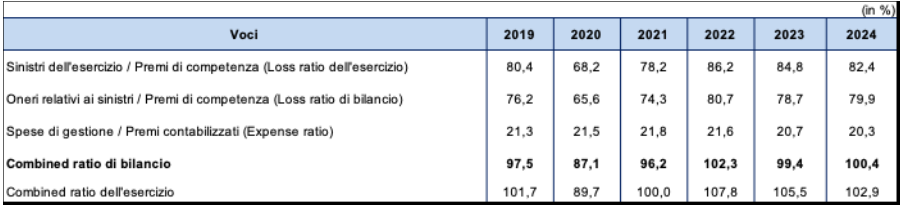 Contestualmente il combined ratio di bilancio presenta un leggero aumento al 100,4% dal 99,4% del 2023, mentre il combined ratio dell’esercizio diminuisce al 102,9% dal 105,9% del 2023, trainato da una crescita dei premi di competenza superiore all’aumento dell’onere per sinistri e dall’expense ratio che si è ridotto al 20,3%, circa un mezzo punto in meno rispetto al 2023, con una composizione dei costi stabile (le provvigioni rappresentano il 52%, le altre spese di acquisizione il 20,4% e quelle di amministrazione il restante 27,6%).