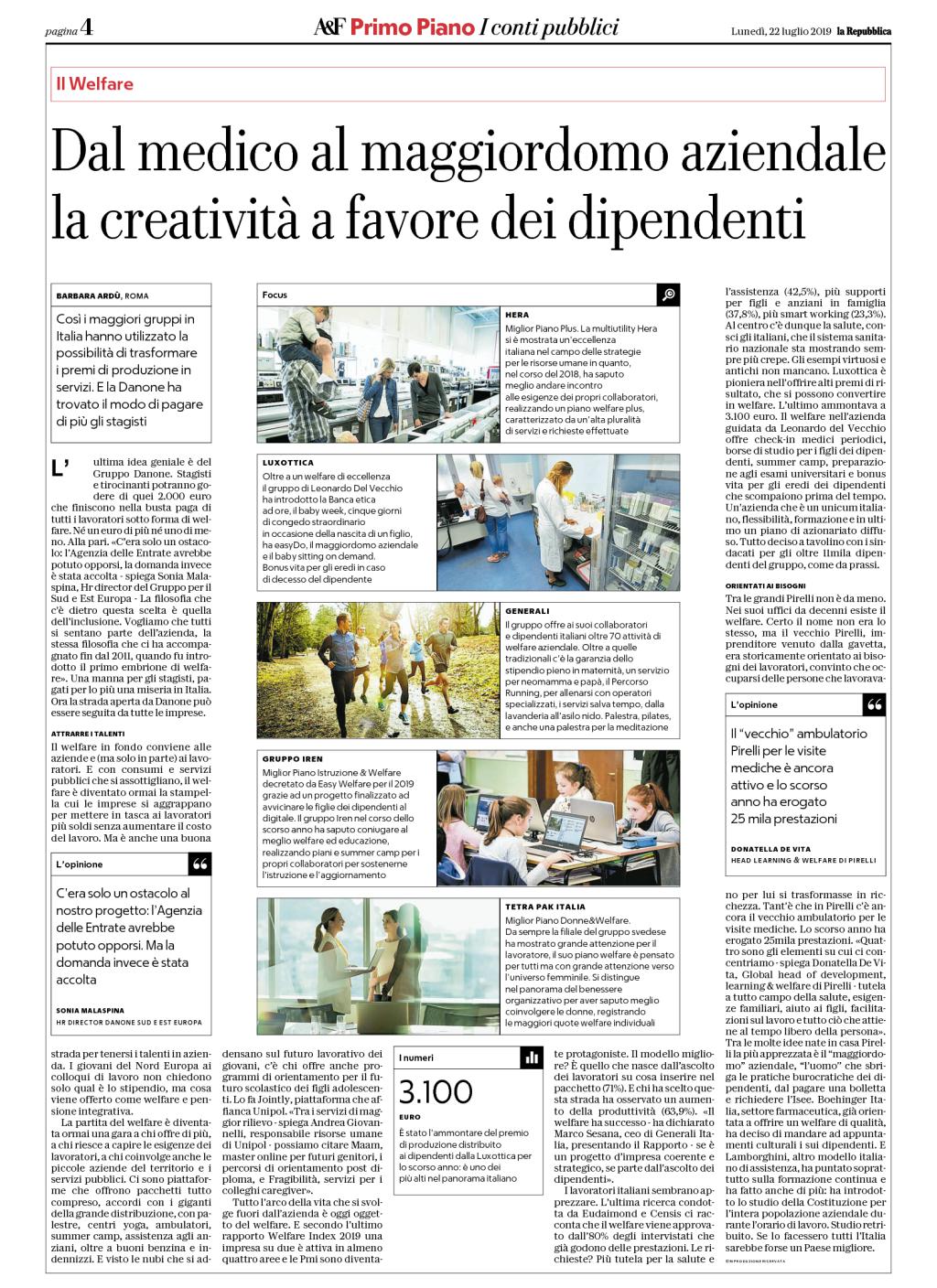 Così i maggiori gruppi in Italia hanno utilizzato la possibilità di trasformare i premi di produzione in servizi. L’ultima idea geniale è del Gruppo Danone. Stagisti e tirocinanti potranno godere dl quel 2.000 euro che finiscono nella busta paga dl tutti i lavoratori sotto forma di welfare. Né un euro di più né modi meno.