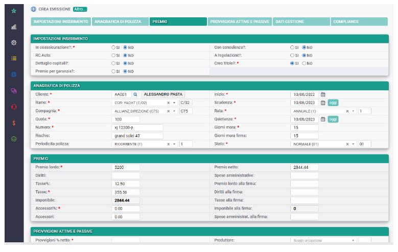 Tutto quello che IAssicur è in grado di suggerirti, te lo suggerisce: calcola il premio lordo dal premio netto, se ho un mandato di un certo tipo inserisce le aliquote provvigionali corrispondenti, calcola i premi, ecc.