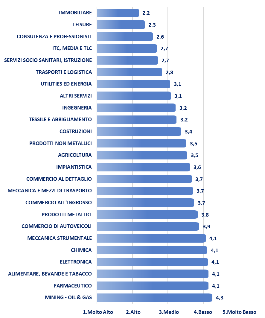 L’analisi per settore mostra una maggiore adeguatezza ambientale delle PMI di Immobiliare, Leisure e Consulenza e professionisti, favoriti da una bassa esposizione al rischio di transizione dovuta principalmente a una modesta produzione di GHG emissions. Al contrario, i settori Mining – Oil & Gas, Farmaceutico e Alimentare, Bevande e Tabacco presentano il minor grado di adeguatezza ambientale. Questi settori sono intrinsecamente legati a processi produttivi ad alta intensità di emissioni e a un impatto ambientale significativo. La sfida per queste industrie non risiede solo nell’adeguarsi ai criteri ESG ma anche nel gestire la transizione verso pratiche più sostenibili senza compromettere la loro operatività.