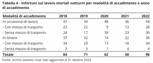 A corollario, considerazioni sulle differenze rispetto agli infortuni in generale e sulle specificità di rischio del lavoro notturno.