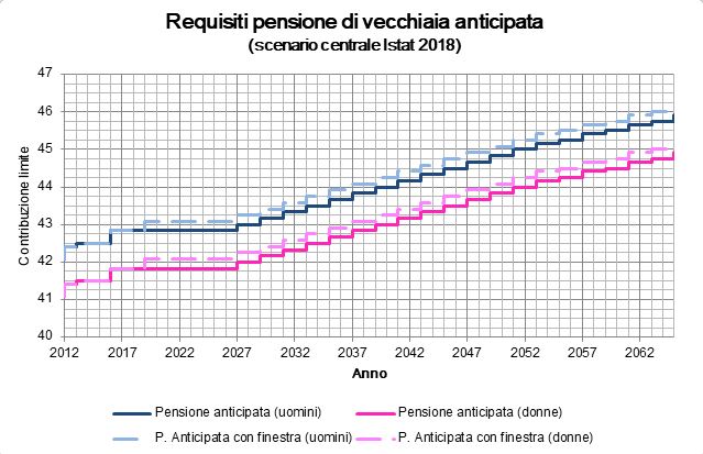 Nei confronti dei lavoratori e delle lavoratrici in possesso di anzianità contributiva al 31 dicembre 1995 la prestazione può essere conseguita, indipendentemente dall’età anagrafica e senza alcuna penalizzazione, al perfezionamento di una determinata anzianità contributiva. Inizialmente pari a 42 anni e 1 mese per gli uomini e 41 anni e 1 mese per le donne. Al pari degli atri requisiti pensionistici anche questo è soggetto all’incremento per la speranza di vita con lo stesso meccanismo. Tuttavia, il DL 4/2019 ha sospeso tali adeguamenti dal 1° gennaio 2019 al 31 dicembre 2026, bloccando con effetto già dall’entrata in vigore del decreto l’adeguamento che era previsto in 5 mesi. Pertanto, dopo il primo incremento di un mese nel 2013 e di un ulteriore mese nel 2014, dal 1° gennaio 2016 il requisito contributivo richiesto è pari a 41 anni e 10 mesi per le donne e 42 anni e 10 mesi per gli uomini e rimarrà tale fino a tutto il 2026.
