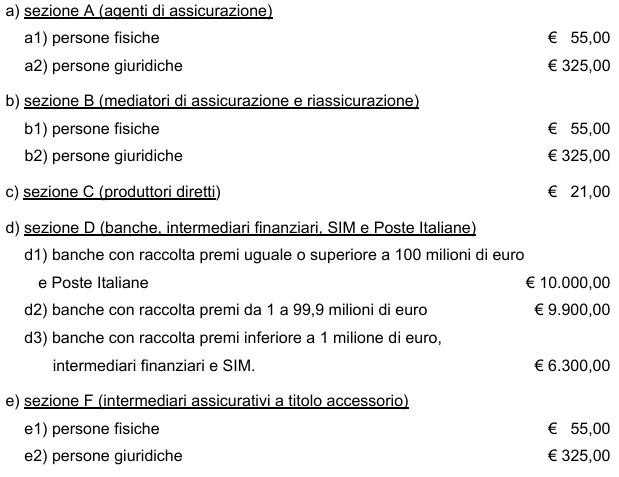 - Per gli intermediari la misura del contributo è stabilita come segue: