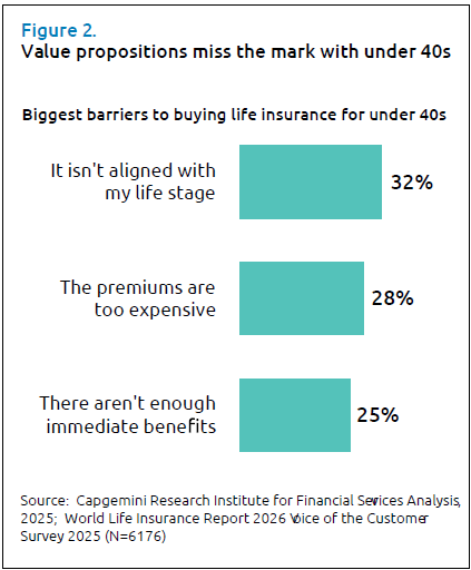 Le attuali proposte vita sono disallineate rispetto alle esigenze degli under 40, il che ne ostacola l’adozione: la durata media dell’impiego e diminuita drasticamente e i baby boomer mediamente restano otto anni e tre mesi con lo stesso datore di lavoro, mentre i millennial e la Gen Z mediamente solo due anni e tre mesi. L’aumento della mobilita lavorativa comporta che l’assicurazione vita collettiva, storicamente un canale di distribuzione stabile, si e frammentata: gli assicuratori devono progettare benefici portabili e adottare strategie di sottoscrizione che mantengano le relazioni con i clienti durante le transizioni di carriera.