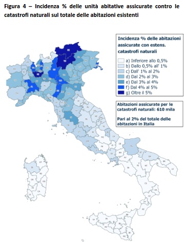 Basandoci sul numero di polizze attive con l’estensione alle catastrofi naturali e applicando la stessa metodologia di calcolo per “trasformare” le polizze in unità abitative (descritta
