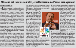 Una cifra compresa tra 3 e 4 miliardi potrà essere utilizzata per acquisizioni e un altro miliardo sarà investito per la trasformazione tecnologica e digitale. Tranquilli su Solvency II e rischio spread