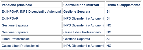 Di contro, invece, la Gestione Separata eroga la pensione supplementare qualora i contributi versati nella stessa gestione non diano titolo autonomo alla pensione. E inoltre, anche nel caso in cui la pensione principale è erogata da una delle Casse dei liberi professionisti.