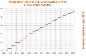Per quanto riguarda il futuro tutti gli scenari demografici hanno confermato un lento e progressivo incremento dei requisiti di pensionamento tra i due e i tre mesi per ciascun biennio. Ovviamente, a oggi non si può sapere con certezza quale sarà l’effettiva maggiorazione. Tuttavia, vale la pena sottolineare che, qualora si registri una riduzione della speranza di vita media o l’incremento risulti essere inferiore a un mese, come avvenuto in questo caso, non si ha una riduzione dei requisiti, ma solo un blocco degli stessi. L’ultimo rapporto pubblicato dalla RGS relativo alle tendenze di medio-lungo periodo del sistema pensionistico e socio sanitario contiene l’ultima stima relativa a tali futuri adeguamenti e sulla base dello scenario centrale di tale modello è possibile prevedere un trend di incrementi che sul lungo orizzonte temporale giunge a 4 anni e 8 mesi complessivi alla soglia del 2065. In poche parole, si conferma il grande timore delle generazioni attualmente attive, tra trenta anni per ottenere la pensione di vecchiaia ne serviranno almeno 70 di anni di età.