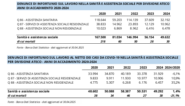 Al netto dei contagi da Covid-19, nel quinquennio 2020-2024 l’andamento delle denunce di infortunio è stato stabile, con dinamiche differenziate tra assistenza sanitaria, servizi residenziali e non residenziali. Oltre un caso su cinque riguarda incidenti avvenuti in itinere, nel tragitto di andata e ritorno tra la casa e il luogo di lavoro, secondo il nuovo Dati Inail