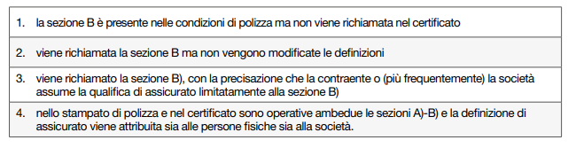 Nel caso d), la polizza prevede che la società contraente assuma la qualifica di «assicurata» nella sezione B (side B) della copertura.