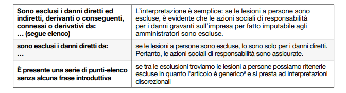 Nel settore D&O i wording presentano almeno tre impostazioni-tipo dell’articolo Esclusioni.